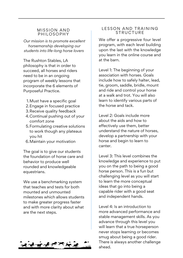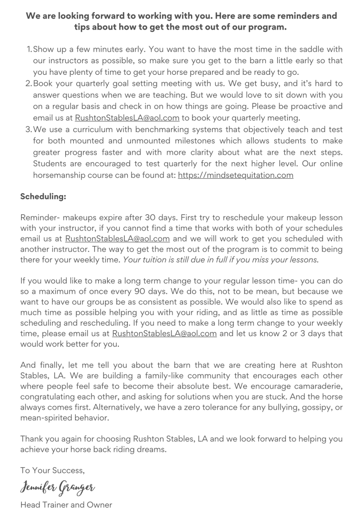 Rushton Stables, LA Welcome Packet Share this: Click to share on X (Opens in new window) X Click to share on Facebook (Opens in new window) Facebook Like Loading...